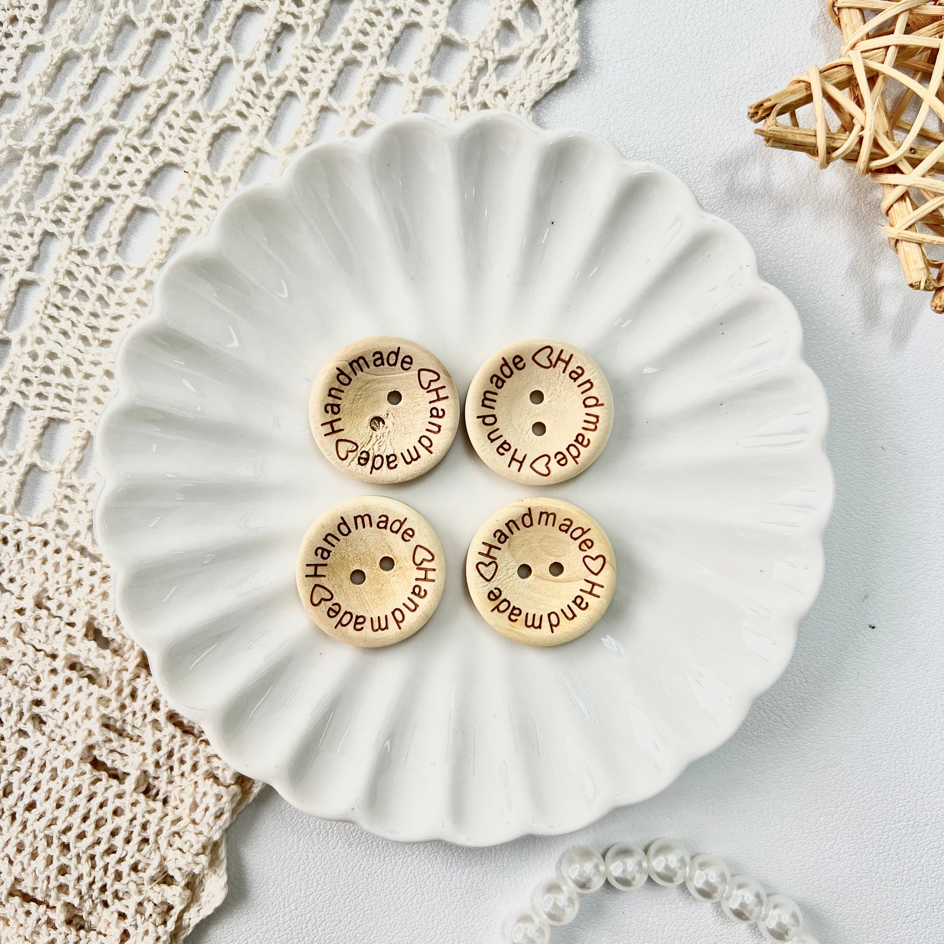 15/20/25mm Round Wooden "Handmade" Buttons